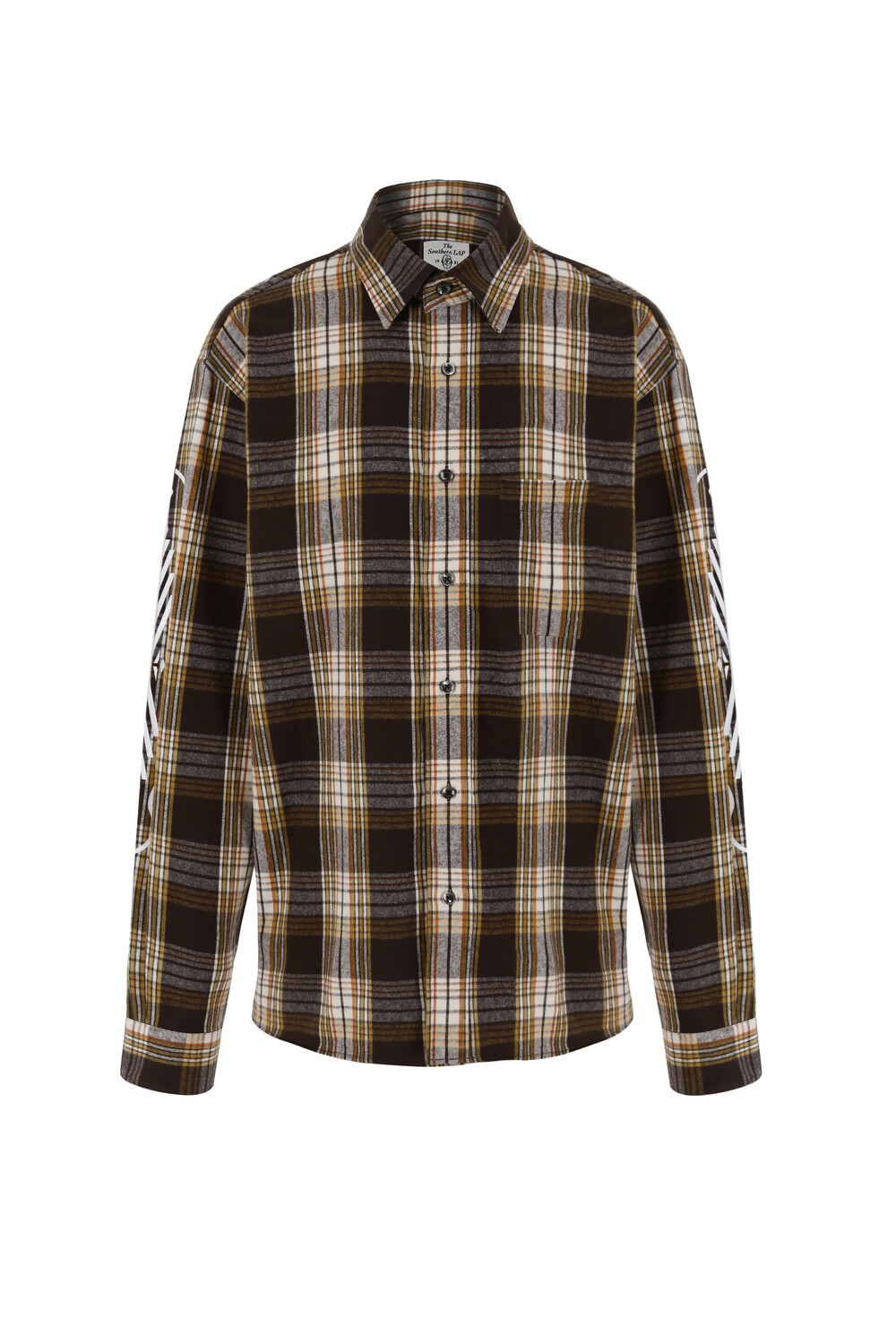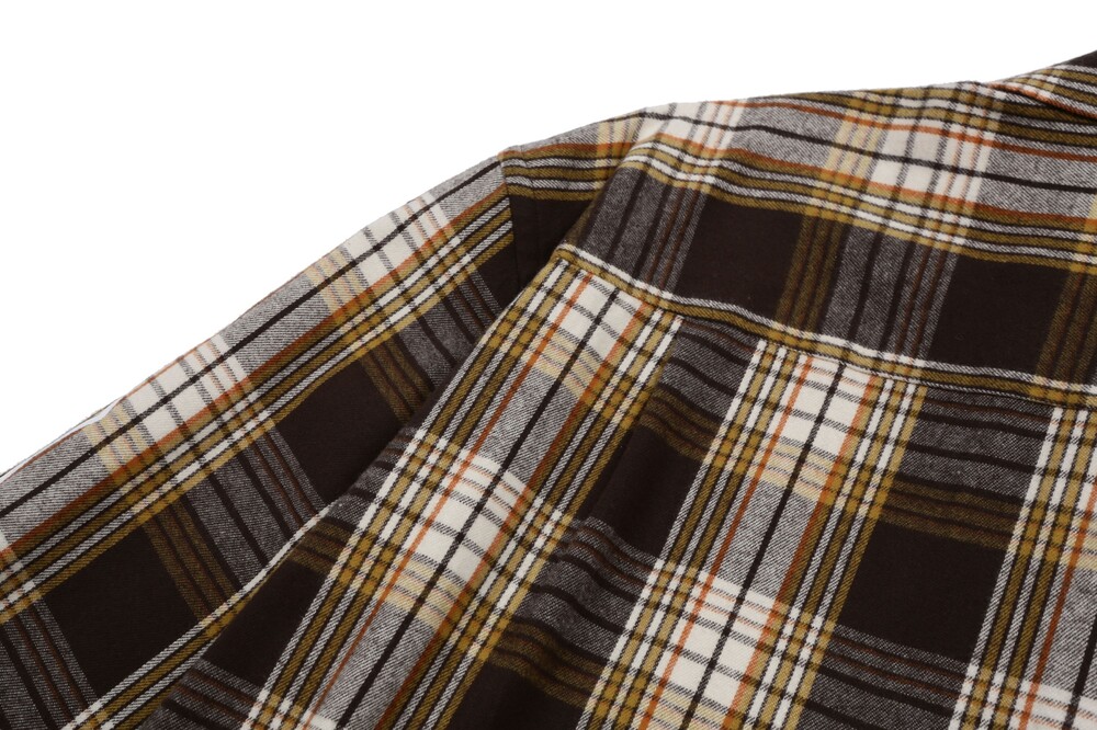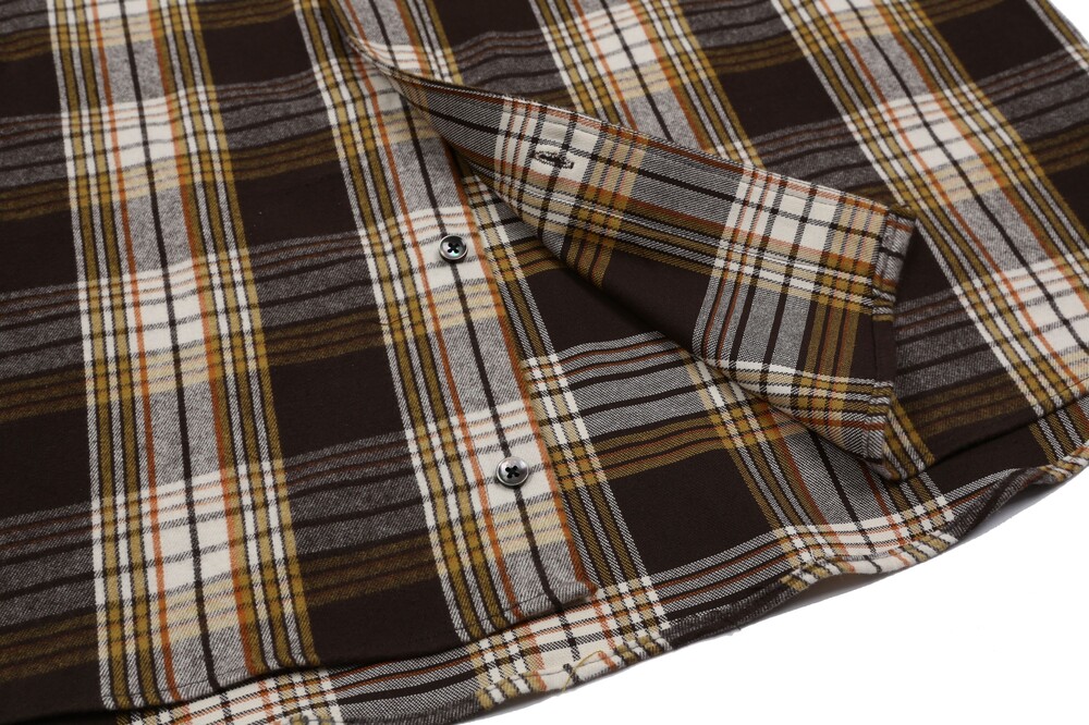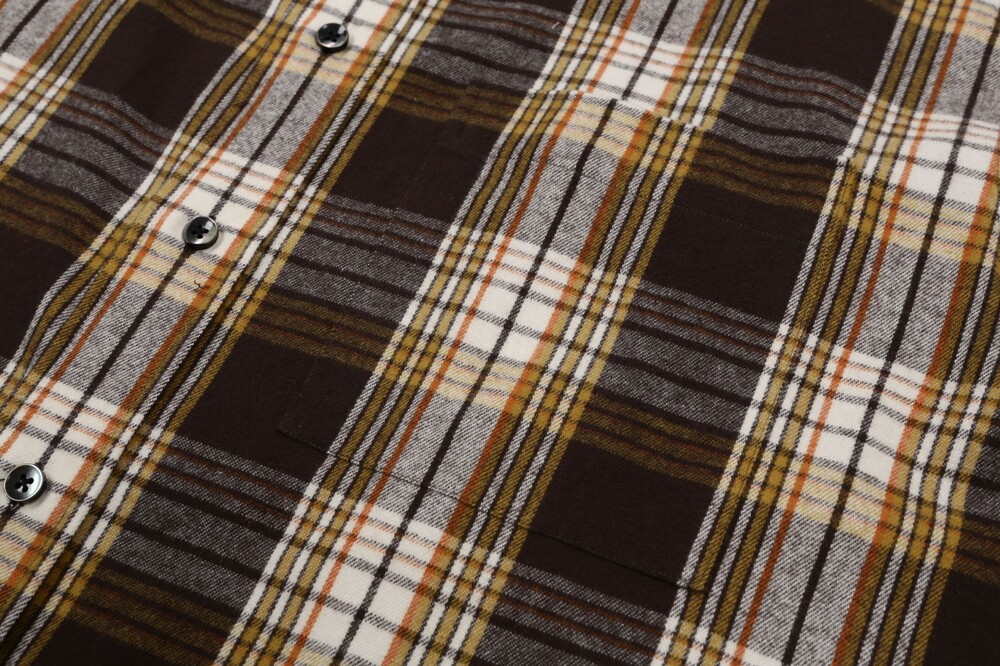 체크 패턴은 전체적으로 정밀하게 매칭되었고, 좌측 가슴의 아웃포켓은 무늬 결을 완벽히 맞춰 마치 셔츠 위에