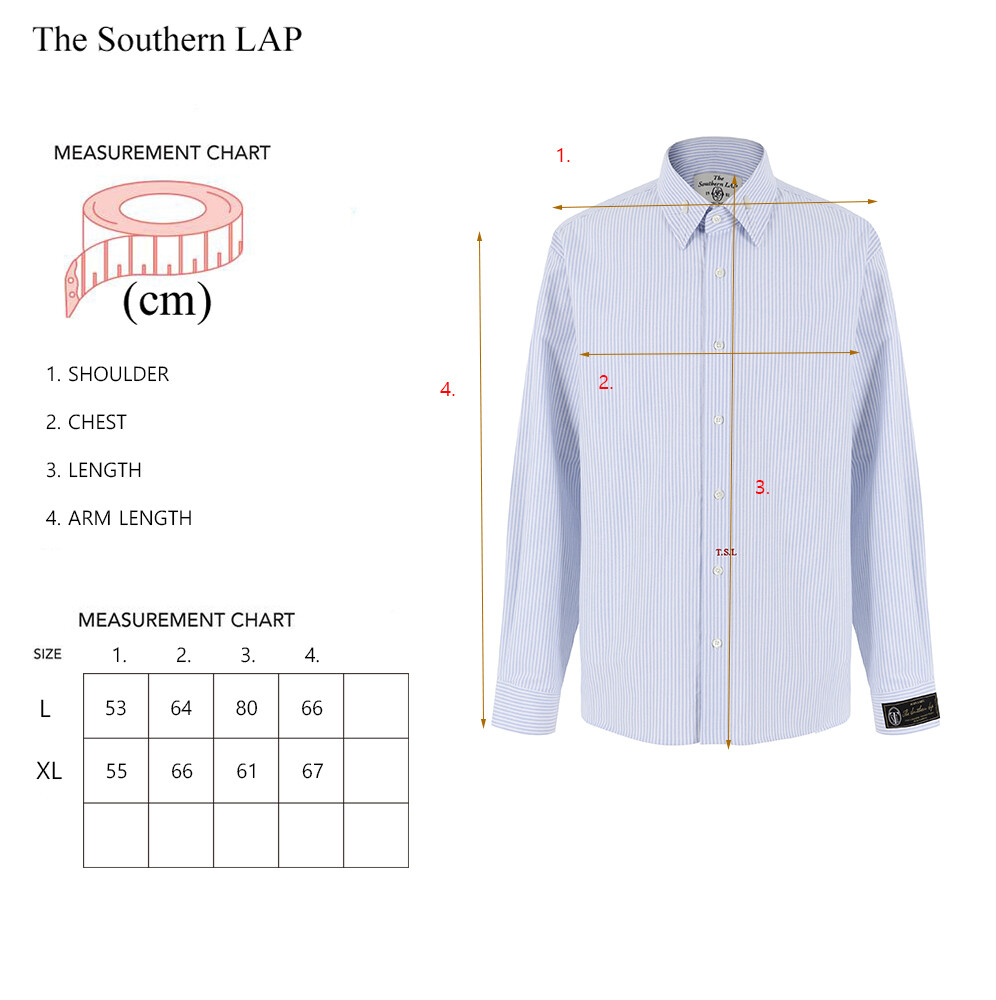 맞춤 셔츠 전문 공장에서 제작되었으며,앞 중심에 더해진 TSL 로고 자수 디테일이 포인트 역할을 합니다.