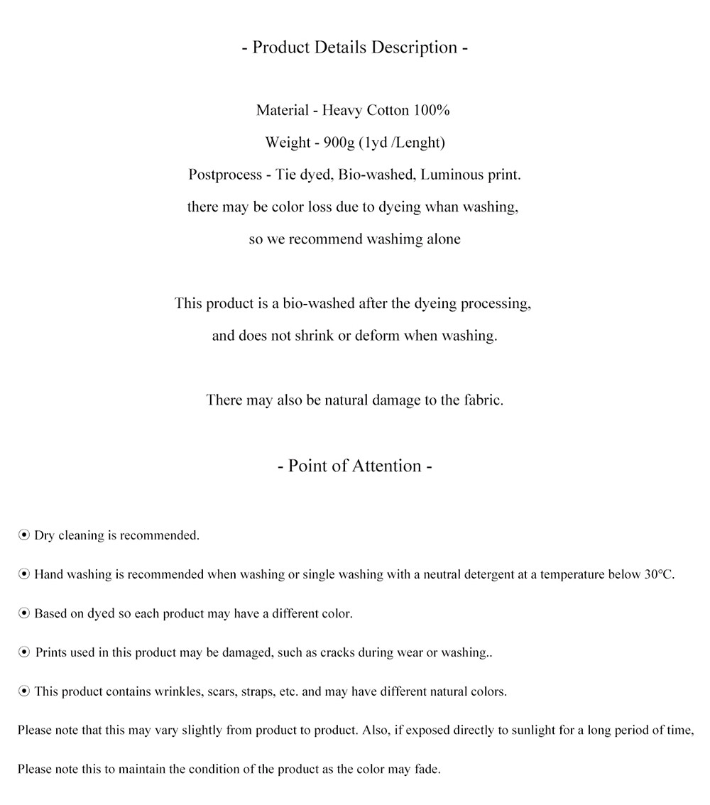 ⊙ 본 제품에 사용된 나염은 세탁 중에 갈라짐과 같은 프린트에 손상이 발생할수 있습니다.